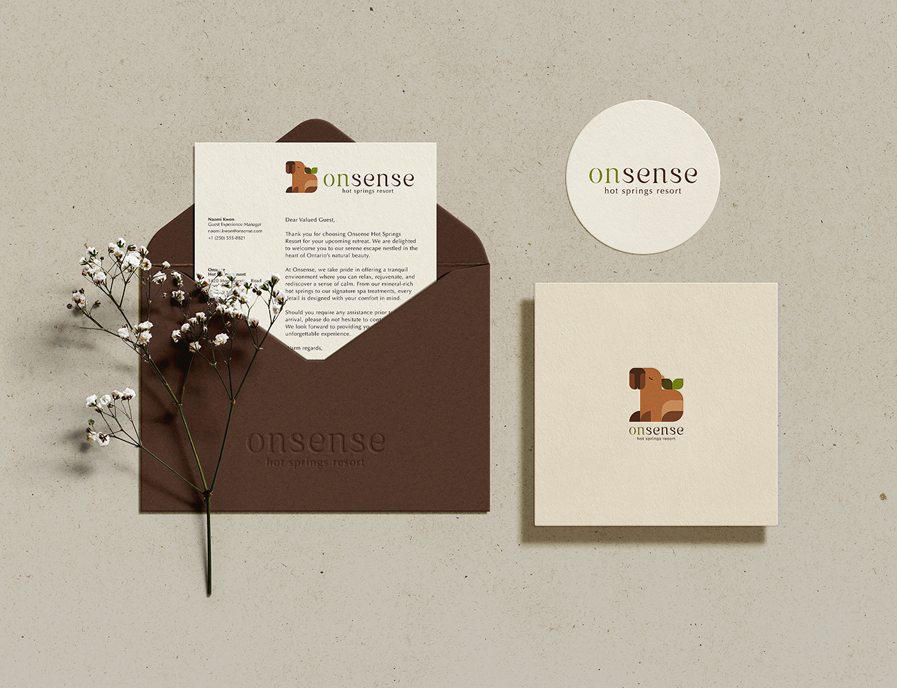 A quadradius-style logo for Onsense Hot Springs Resort, inspired by sensory wellness, natural hot springs, and the balance between nature and mindful living.