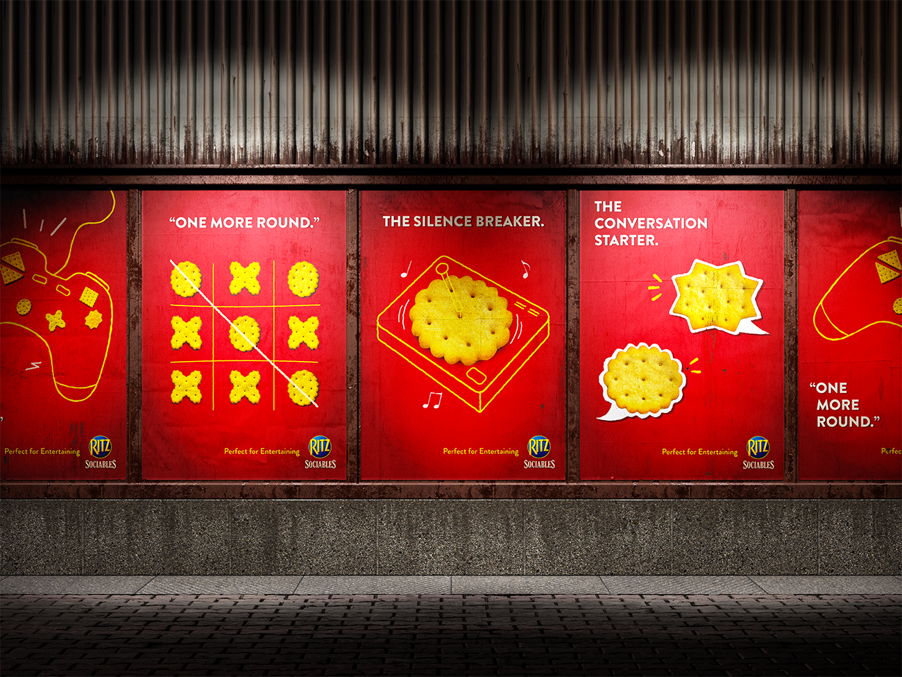 A visual metaphor mini-campaign for Ritz Sociables, positioning it as the perfect snack for entertaining.