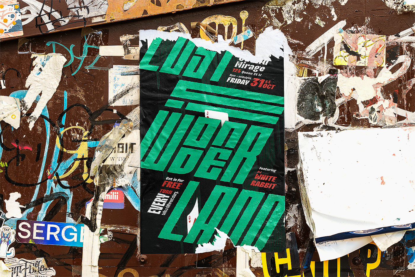Typographic poster for 'Lost in Wonderland' music festival.