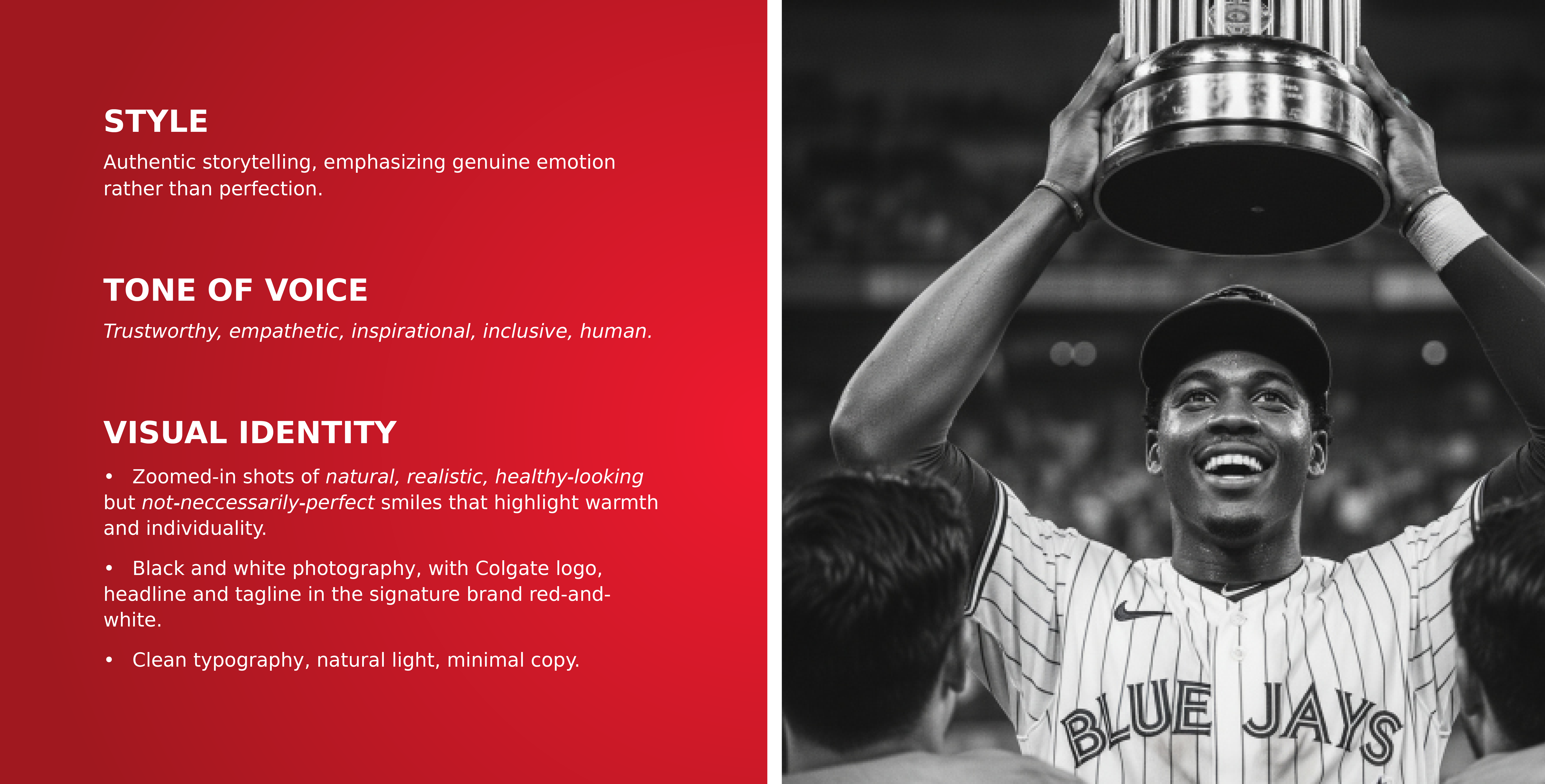 Repositioning Colgate as a modern symbol of confidence through real Canadian smiles and their stories.